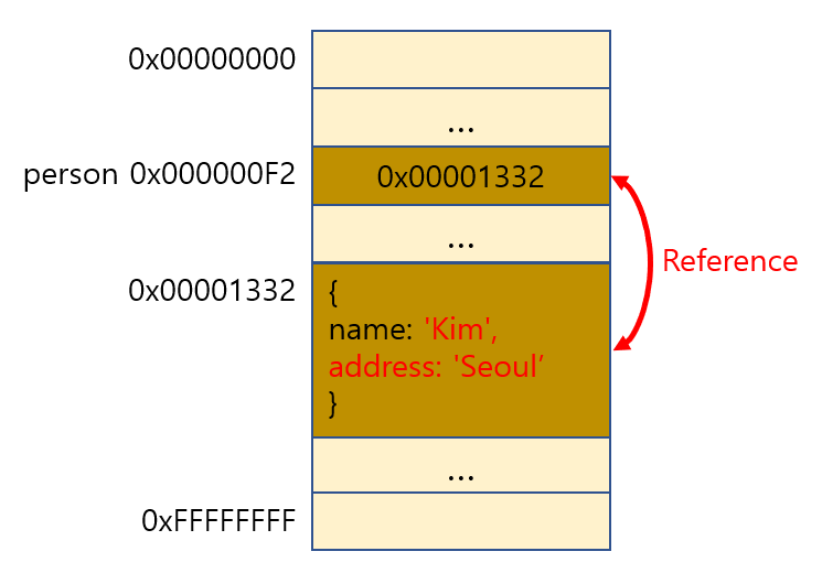 변수와 같은 식별자는 실제로 메모리 주소를 기억하고 있고 실제로는 값을 전달하는 것이 아닌 메모리 주소를 전달함