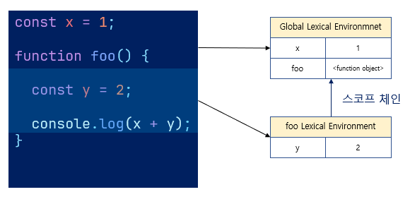 - 렉시컬 환경은 스코프와 식별자를 관리
