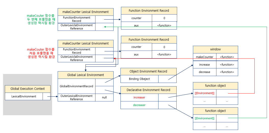 makeCounter 함수를 두 번째 호출했을 때 생성된 렉시컬 환경