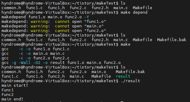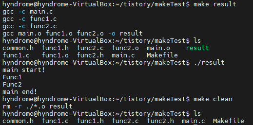 result: main.o func1.o func2.o