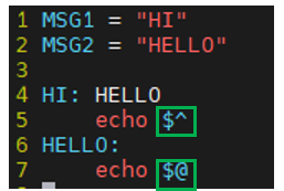 - $^ : 의존성 타겟들을 나타냄
