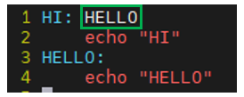 아래의 경우 HI 를 실행하면 의존성에 HELLO가 있어서