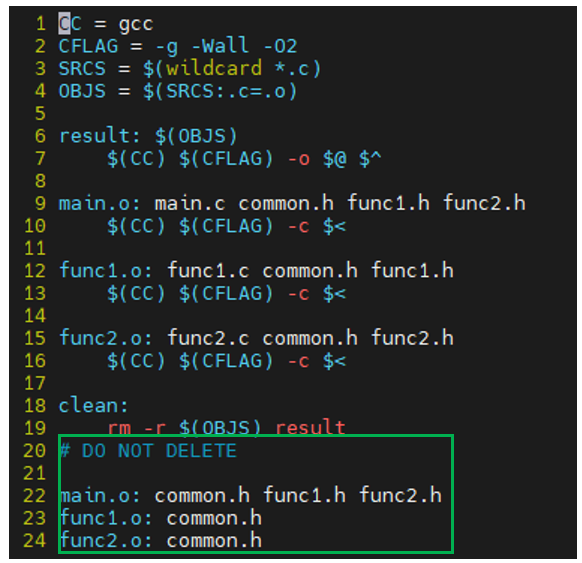 Makefile 하단에 의존성 목록이 자동으로 추가된 것을 확인할 수 있다.
