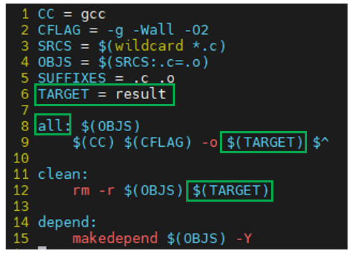 - OBJS: 목적 파일 목록