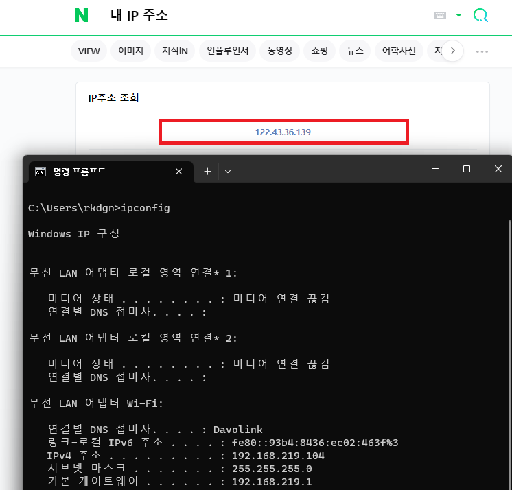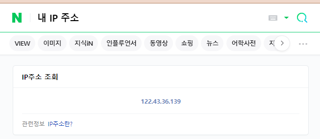 네이버에 "내 IP 주소" 검색