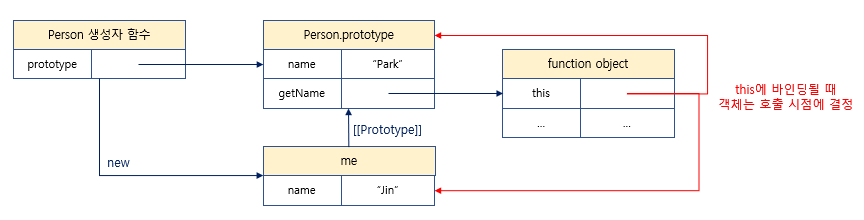 암묵적으로 생성된 빈 객체, 즉 인스턴스는 this에 바인딩