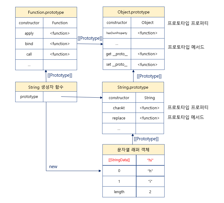 String, Number, Boolean 생성자 함수는 new 연산자와 함께 호출했을 때 String, Number, Boolean 객체를 생성하여 반환하지만 new 연산자 없이 호출하면 문자열, 숫자, 불리언 값을 반환. 이를 통해 데이터 타입을 변환하기도 함